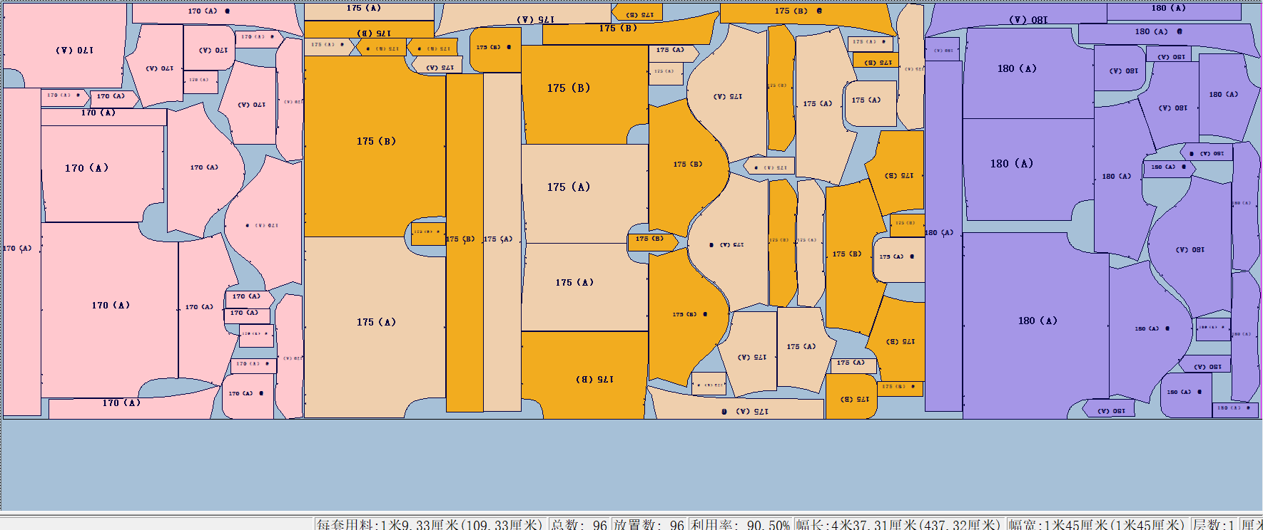 6.使用最佳幅宽排: 根据面料定制需求,在一定范围内自动计算利用率最好的一个面料宽度;