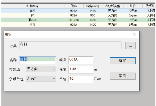 物料模块可对数据库/ERP采购等,提供的面料信息进行编 辑处理。